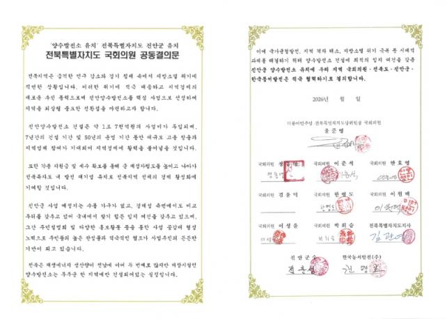 Áø¾È±º °ü°èÀÚ´Â ¡°¾ç¼ö¹ßÀü¼Ò À¯Ä¡´Â Áø¾È±ºÀ» ³Ñ¾î ÀüºÏ ÀüüÀÇ ¹Ì·¡ °æÀï·Â°ú Á÷°áµÈ °úÁ¦¡±¶ó¸ç ¡°ÀüºÏƯº°ÀÚÄ¡µµ¿Í Áö¿ª ±¹È¸ÀÇ¿øµéÀÌ ÇÔ²² ¶æÀ» ¸ð¾Æ °øµ¿¼¸íÀ¸·Î À̾îÁ³´Ù´Â °ÍÀº ÀüºÏÀÌ ÇϳªÀÇ ÆÀÀ¸·Î ¿òÁ÷À̰í ÀÖ´Ù´Â »ó¡ÀûÀÎ Àǹ̸¦ °®´Â´Ù¡±°í ¹àÇû´Ù.