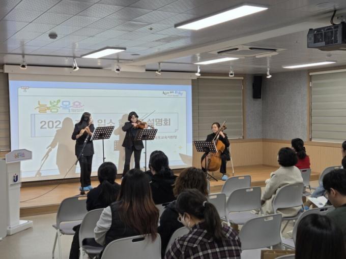 À̹ø ¼³¸íȸ´Â Àú³á½Ã°£¿¡ ¸ñÆ÷ °ü³» 15°³ ÃʵîÇб³ 1~4Çгâ Çкθð ¾à 80¿© ¸íÀÌ Âü¼®ÇÏ¿©, Á¤¿øÀ» ÃʰúÇÏ´Â ³ôÀº °ü½É ¼Ó¿¡ ÁøÇàµÇ¾ú´Ù. ÇкθðµéÀº ´Ãº½¼¾ÅÍÀÇ ¿î¿µ ¹æÇâ°ú Æ¯È ÇÁ·Î±×·¥¿¡ ´ëÇÑ ¾È³»¸¦ ¹ÞÀ¸¸ç, ÀÚ³àµéÀÇ ¹Ì·¡ ±³À°¿¡ ´ëÇÑ ±â´ë°¨À» °øÀ¯ÇÏ¿´´Ù.