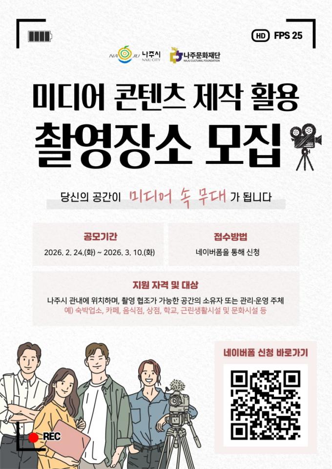 ³ªÁÖ¹®ÈÀç´ÜÀº Áö¿ª ÀÚ¿øÀÇ È¿°úÀûÀÎ È«º¸¿Í ¼Ò»ó°øÀÎ Áö¿øÀ» À§ÇØ ¡®¹Ìµð¾î ÄÜÅÙÃ÷ ÃÔ¿µ Àå¼Ò¡¯¸¦ ¿À´Â 3¿ù 10ÀϱîÁö °ø°³ ¸ðÁýÇÑ´Ù°í 26ÀÏ ¹àÇû´Ù.