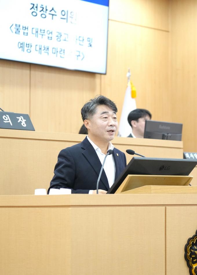 Á¤ ÀÇ¿øÀº "¹Ù´Ú¿¡ ¹ö·ÁÁø ¸íÇÔ ÇÑ ÀåÀÌ, ÇÑ ÅëÀÇ ÀüÈ·Î ÁÖ¹ÎÀÇ »îÀ» À§ÇùÇÏ´Â ¾ÈŸ±î¿î »ç·Ê°¡ ¹Ýº¹µÇ°í ÀÖ´Ù"¸ç, °ü³» °Å¸®¿¡¼ ¹ß°ßÇÑ ºÒ¹ý´ëºÎ¾÷ ±¤°í ¸íÇÔ »ç·Ê¸¦ ¼Ò°³Çß´Ù. ÀÌ·¯ÇÑ ¸íÇÔÀº ¹ý·É¿¡¼ ±ÔÁ¤ÇÏ´Â »óÈ£¸í, µî·Ï¹øÈ£, ¿¬Ã¼¼ö¼ö·áÀ², 乫À§Ç輺 °æ°í ¹®±¸ µîÀ» Ç¥±âÇÏÁö ¾ÊÀº ÀüÇüÀûÀÎ ºÒ¹ý ±¤°í¹°À̸ç, ´Ü ÇÑ ¹øÀÇ ¹ß½ÅÀ¸·Îµµ Àû±ØÀûÀÎ ¿µ¾÷ Åë·Î·Î Ȱ¿ëµÇ°í ÀÖÀ½À» ÁöÀûÇß´Ù.