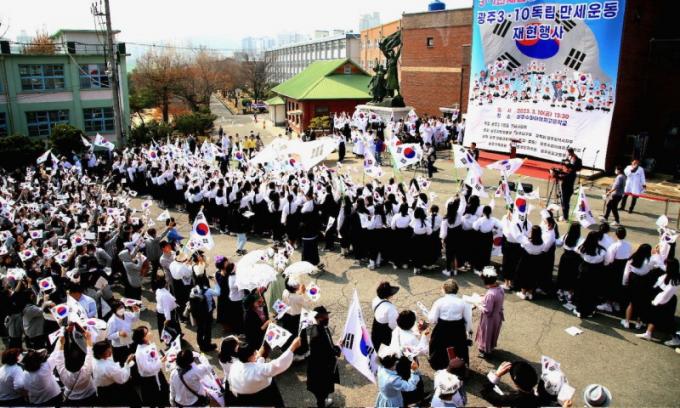 ¸ÕÀú ¹®È­ Çà»ç¿¡¼­´Â ¼öÇǾƿ©°í¿Í ¼þÀϰí ÇлýµéÀÌ ÁغñÇÑ ¡®¸¸¼¼ ±È±â ÆÛÆ÷¸Õ½º¡¯¸¦ ºñ·ÔÇØ ¿À¹æ ÃÖÈïÁ¾ ±â³ä°ü¿¡¼­ ½Ã¹Î°Å¸®±Ø ¡®3¡¤1 ¸¸¼¼¿îµ¿ÀÇ ºÒ¾¾°¡ µÇ¾î–120³â Àü ±Ù´ë¿ª»ç¹®È­¸¶À» ¾ç¸²µ¿ À̾߱⡯¸¦ ¼±º¸ÀδÙ.