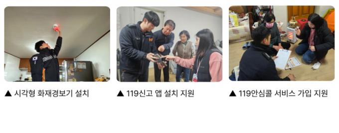 ÀåÈï¼Ò¹æ¼´Â ´ë»ó °¡±¸¸¦ Á÷Á¢ ¹æ¹®ÇØ ÈÀç ¹ß»ý ½Ã ºûÀ¸·Î À§ÇèÀ» ¾Ë¸®´Â ½Ã°¢Çü ÈÀç°¨Áö±â¸¦ ¼³Ä¡Çϰí ÀÛµ¿ »óŸ¦ Á¡°ËÇß´Ù. ¶ÇÇÑ 119½Å°í¾Û ¼³Ä¡¸¦ Áö¿øÇÏ°í »ç¿ë ¹æ¹ýÀ» ±³À°ÇßÀ¸¸ç, ¡®119¾È½ÉÄÝ ¼ºñ½º¡¯ °¡ÀÔµµ Áö¿øÇß´Ù. »ýȰ¾ÈÀü¼øÂû´ë¿Í ÀåÈﱺÀº ÁÖÅà ³» ÈÀç À§Çè¿ä¼Ò¸¦ Á¡°ËÇÏ°í ³ëÈÄ Àü±â½Ã¼³ °³¼±°ú ¼Òȱ⠻ç¿ë¹ý ¾È³» µî ÁÖ°Åȯ°æ °³¼±À» º´ÇàÇß´Ù.