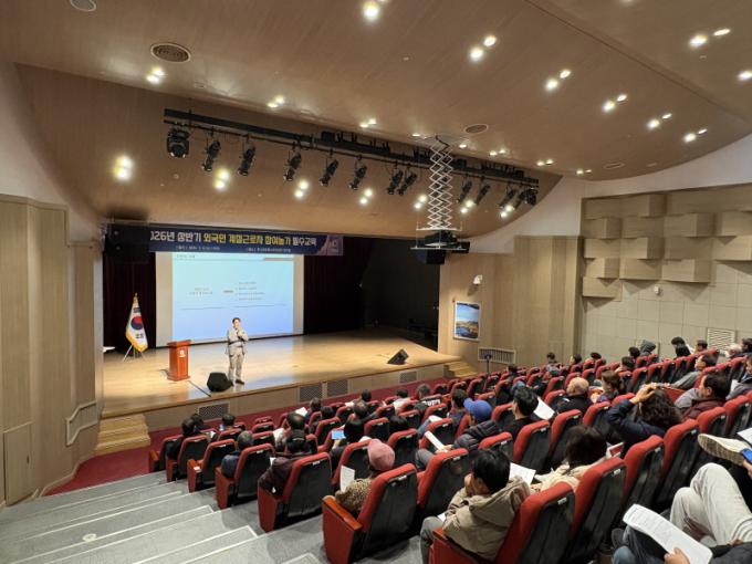 »ó¹Ý±â ÇÁ·Î±×·¥ Âü¿© ³ó°¡ 120¿© ¸íÀ» ´ë»óÀ¸·Î ÁøÇàµÈ À̹ø ±³À°Àº ¿Ü±¹ÀÎ °èÀý±Ù·ÎÀÚ °í¿ë ½Ã ÁؼöÇØ¾ß ÇÒ ±Ù·Î±âÁعý µî °í¿ëÁÖ Áؼö»çÇ×, ÃâÀÔ±¹ °ü·Ã »çÇ×, ±Ù·ÎÀÚ ÀÎ±Ç Ä§ÇØ ¿¹¹æ ±³À° µîÀ» Áß½ÉÀ¸·Î ÀÌ·ïÁ³´Ù.