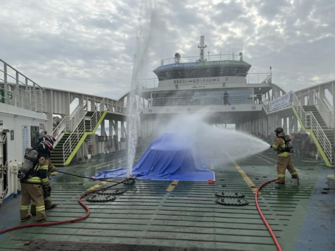 ƯÈ÷ Â÷·® ÇϺÎÁÖ¼ö°üâ°ú °üÅëÇü ¹æ»çÀåÄ¡(µå¸±·£½º) µî Àü±âÂ÷ ÈÀç ´ëÀÀ Àü¹® Àåºñ¸¦ Ȱ¿ëÇÑ Áø¾Ð ½Ã¿¬À» ÅëÇØ ½ÇÀü ´ëÀÀ´É·ÂÀ» Á¡°ËÇß´Ù. ¶ÇÇÑ ÇØ¾ç°æÂû ±¸Á¶Á¤ÀÌ ÅõÀԵǾî ÇØ»ó Åð¼±ÀÚ ±¸Á¶ ÈÆ·ÃÀ» ½Ç½ÃÇÏ´Â µî °ü°è±â°ü °£ ¿ªÇÒ ºÐ´ã°ú Çù·Âü°è¸¦ Á¾ÇÕÀûÀ¸·Î Á¡°ËÇÏ´Â ½Ã°£À» °¡Á³´Ù.