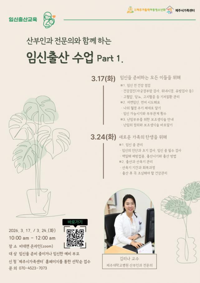 ½ÅûÀº 3¿ù 13ÀϱîÁö Á¦Áֽð¡Á·¼¾ÅÍ ´©¸®Áý(http://jeju.familynet.or.kr)À» ÅëÇØ ¼±Âø¼ø Á¢¼öÇÏ¸é µÇ°í, ±âŸ ÀÚ¼¼ÇÑ »çÇ×Àº Á¦Áֽð¡Á·¼¾ÅÍ °¡Á·±³À°ÆÀ(¢Ï070-4523-7073)À¸·Î ¹®ÀÇÇÏ¸é µÈ´Ù. Á¦Áֽð¡Á·¼¾ÅÍ´Â ¿À´Â 3¿ù 31ÀÏ(È­) ¡®ÀÓ½ÅÃâ»ê¼ö¾÷ part 2. ³ª¸¦ À§ÇÑ Çâ±â·Î¿î ¸¶À½Ã¬±è¡¯ ÇÁ·Î±×·¥µµ ¿î¿µÇÒ ¿¹Á¤À̸ç, ÇØ´ç °­Áµµ ¼±Âø¼ø 15¸í¿¡ ÇÑÇØ ¹«·á·Î ÁøÇàµÈ´Ù.