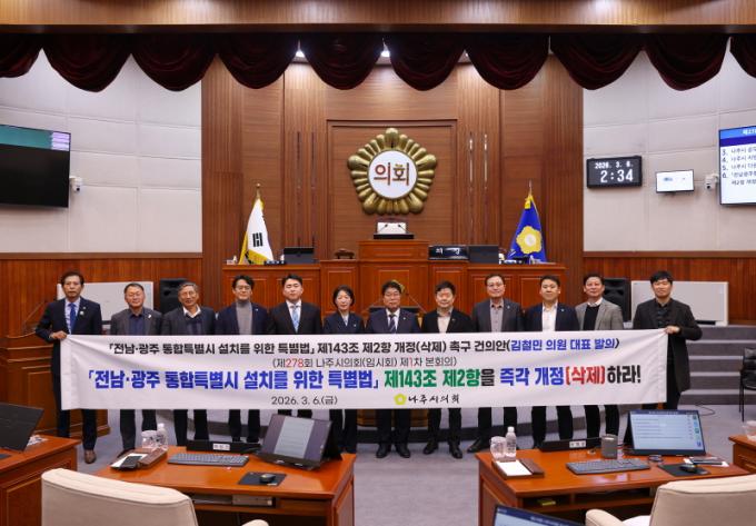 ³ªÁÖ½ÃÀÇȸ´Â À̹ø °ÇÀǾÈÀ» ÅëÇØ ¡ã¡¸Àü³²±¤ÁÖÅëÇÕÆ¯º°½Ã ¼³Ä¡¸¦ À§ÇÑ Æ¯º°¹ý¡¹ Á¦143Á¶ Á¦2Ç× Áï°¢ Àç°ËÅä ¹× »èÁ¦ ¡ã±¤ÁÖ¡¤Àü³² °øµ¿Çõ½Åµµ½ÃÀÇ ±â´É°ú À§»ó º¸È£¸¦ À§ÇÑ Á¤Ã¥Àû¡¤Á¦µµÀû ÀåÄ¡ ¸¶·Ã ¡ãÀü¶ó³²µµ¿Í ³ªÁֽà °£ °øµ¿ ´ëÀÀ ü°è ±¸Ãà ¡ãÁö¿ª Á¤Ä¡±Ç°ú ½Ã¹Î»çȸÀÇ ÃÊ´çÀû ¿¬´ë¿Í °øµ¿ ´ëÀÀ µîÀ» Ã˱¸Çß´Ù.