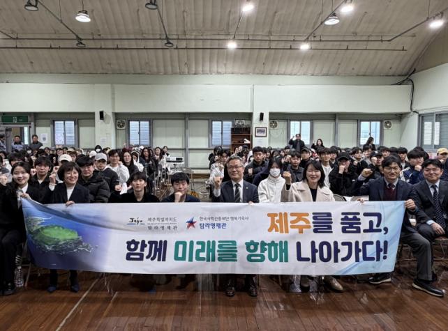 Áø¸í±â Á¦ÁÖµµ ÇàÁ¤ºÎÁö»ç¸¦ ºñ·ÔÇÑ µµ °ü°èÀÚ¿Í ÀÔÁÖ»ý µî 230¿© ¸íÀÌ Âü¼®ÇÑ À̹ø Çà»ç´Â ÀÔÁÖ Ãʱâ ÇлýµéÀÇ ¾ÈÁ¤ÀûÀÎ Á¤ÂøÀ» µ½°í µµ¿Ü Á¦ÁÖ Ã»³â °£ ¼ÒÅëÀ» °ÈÇϱâ À§ÇØ ¸¶·ÃµÆ´Ù.