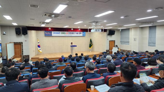 [½Ã»çÁ¾ÇսŹ® = ¿À½ÂÅà ±âÀÚ] È­¼ø±º(±º¼ö ±¸º¹±Ô)Àº Áö³­ 6ÀÏ ³ó¾÷±â¼ú¼¾ÅÍ ´ë°­´ç¿¡¼­ ½Ò Àü¾÷³ó µî ³ó¾÷ÀÎ 101¸íÀ» ´ë»óÀ¸·Î °íǰÁú ½Ò »ý»ê ±â¹Ý ±¸Ãà°ú ±âÈĺ¯È­ ´ëÀÀ Àç¹è±â¼ú °­È­¸¦ À§ÇÑ ¡®2026³â °íǰÁú ½Ò ¾ÈÁ¤»ý»ê ±â¼ú±³À°¡¯À» ½Ç½ÃÇß´Ù°í ¹àÇû´Ù.