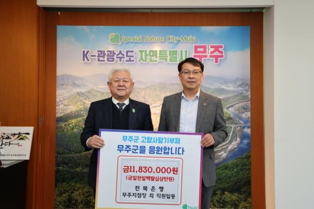 ÀüºÏÀºÇà ¹«ÁÖÁöÁ¡Àº Áö³­ 2023³âºÎÅÍ 4³â ¿¬¼Ó °íÇâ»ç¶û ±âºÎ¿¡ µ¿Âü(7,343¸¸ ¿ø ±âŹ)ÇÏ¸ç ¡®°íÇâ»ç¶û ¹«ÁÖ»ç¶û¡¯ È«º¸¿¡ ¾ÕÀå¼­°í ÀÖ´Ù.