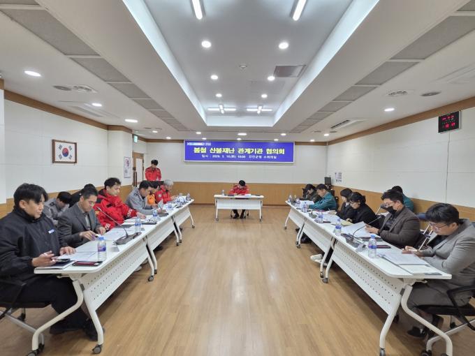 À̹ø ÇùÀÇȸ¿¡´Â °­Áø±º »ê¸²°ú, Ãѹ«°ú, ¹®È­°ü±¤°ú, Áֹκ¹Áö°ú, ±º¹ÎÇູ°ú, ¾ÈÀüÀç³­±³Åë°ú µî ±º °ü°èºÎ¼­¿Í ÇÔ²² °­Áø¼Ò¹æ¼­, °­Áø°æÂû¼­, ¿µ¾Ï±¹À¯¸²°ü¸®¼Ò, Çѱ¹Àü·Â°ø»ç °­ÁøÁö»ç, Çѱ¹Àü·Â°ø»ç °­ÁøÀü·ÂÁö»ç, À°±º Á¦8539ºÎ´ë 2´ë´ë µî °ü°è±â°üÀÌ Âü¼®ÇØ º½Ã¶ »êºÒ ¿¹¹æ°ú ´ëÀÀÀ» À§ÇÑ Çù·Â ¹æ¾ÈÀ» ³íÀÇÇß´Ù.