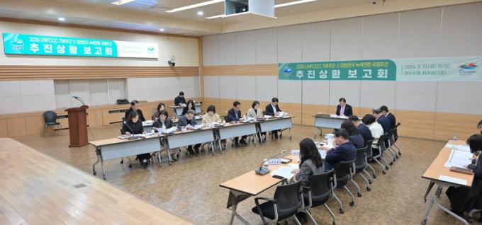 [½Ã»çÁ¾ÇսŹ® = ¿À½ÂÅà ±âÀÚ] ¿©¼ö½Ã´Â À¯¿£±âÈĺ¯È­Çù¾à(UNFCCC) ±âÈÄÁÖ°£ Çà»ç¸¦ 40¿© ÀÏ ¾ÕµÐ 13ÀÏ Á¤Çö±¸ ½ÃÀå ±ÇÇÑ´ëÇà ÁÖÀç·Î ¡®À¯¿£±âÈĺ¯È­Çù¾à ±âÈÄÁÖ°£ ¹× ´ëÇѹα¹ ³ì»öÀüȯ ±¹Á¦ÁÖ°£¡¯ ¼º°ø °³ÃÖ¸¦ À§ÇÑ ºÎ¼­º° ÃßÁø»óȲ º¸°íȸ¸¦ °³ÃÖÇß´Ù°í ¹àÇû´Ù.