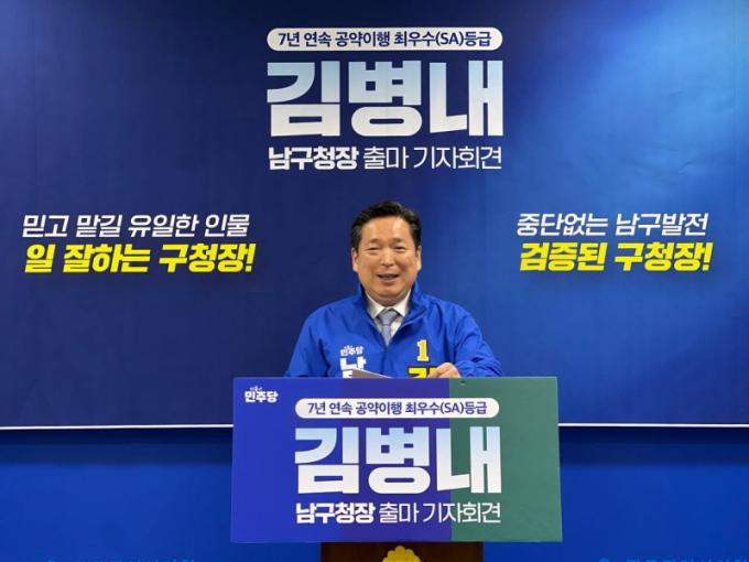 [½Ã»çÁ¾ÇսŹ® = ¿À½ÂÅà ±âÀÚ] ±èº´³» ³²±¸Ã»Àå ¿¹ºñÈ帴 16ÀÏ, Á¦9ȸ Àü±¹µ¿½ÃÁö¹æ¼±°Å ³²±¸Ã»Àå Ã⸶¸¦ °ø½Ä ¼±¾ðÇÏ°í ¡°±¤ÁÖ¡¤Àü³² ÅëÇսô븦 ¾ÕµÎ°í ³²±¸¸¦ ´ëÇѹα¹ ³²ºÎ±ÇÀÇ °æÁ¦¡¤¹®È­¡¤±³À° Á߽ɵµ½Ã·Î µµ¾à½ÃŰ°Ú´Ù¡±´Â ºñÀüÀ» ¹àÇû´Ù.