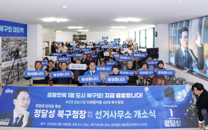 Á¤´Þ¼º ¿¹ºñÈ帴 14ÀÏ(Åä) ±¤ÁÖ ºÏ±¸¿¡ À§Ä¡ÇÑ ¼±°Å»ç¹«¼Ò¿¡¼ Áö¿ª Áֹΰú ÁöÁöÀÚ, °¢°è ÀÎ»ç µîÀÌ Âü¼®ÇÑ °¡¿îµ¥ ¡°´Þ¼ºÇÕ´Ï´Ù. Á¤´Þ¼º¡± ¼±°Å»ç¹«¼Ò °³¼Ò½ÄÀ» ¿°í ºÏ±¸ÀÇ »õ·Î¿î º¯È¸¦ À§ÇÑ Ãâ¹ßÀ» ¾Ë·È´Ù.