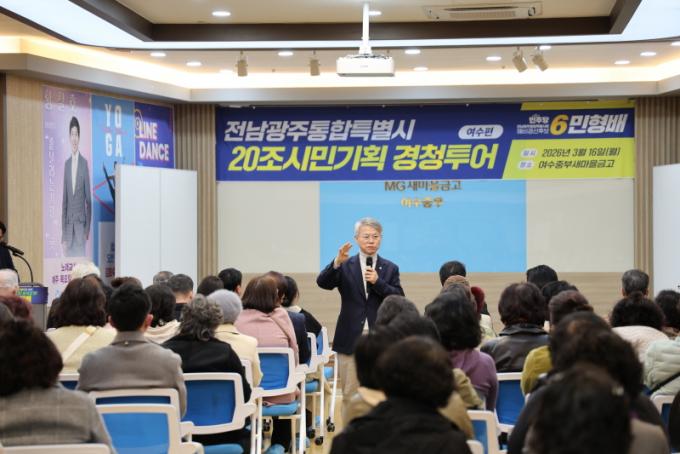 [½Ã»çÁ¾ÇսŹ® = ¿À½ÂÅà ±âÀÚ] ´õºÒ¾î¹ÎÁÖ´ç Àü³²±¤ÁÖÅëÇÕÆ¯º°½ÃÀå °æ¼± Èĺ¸ÀÎ ¹ÎÇü¹è ±¹È¸ÀÇ¿ø(±¤ÁÖ ±¤»ê±¸À»)ÀÌ ¿©¼ö¿¡¼­ ½Ã¹Îµé°ú ¸¸³ª ÅëÇÕ¿¡ µû¸¥ Á¤ºÎ Ưº° Áö¿ø±Ý 20Á¶¿øÀÇ È°¿ë ¹æÇâ°ú Áö¿ª Çö¾È¿¡ ´ëÇÑ ÀǰßÀ» µé¾ú´Ù°í 17ÀÏ ¹àÇû´Ù.