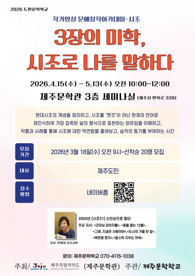 Á¦ÁÖ¹®ÇÐÇб³ ¾È»ó±Ù ¿î¿µÀ§¿øÀåÀº ¡°À̹ø ¹®¿¹Ã¢ÀÛ¾ÆÄ«µ¥¹Ì´Â âÀÛÀ» ²Þ²Ù´Â µµ¹ÎµéÀÌ ½ÇÁ¦·Î ÀÛǰÀ» ¿Ï¼ºÇϰí, ÀÌÈÄ È°µ¿±îÁö À̾ ¼ö ÀÖµµ·Ï ¼³°èµÈ °úÁ¤¡±À̶ó¸ç ¡°Ã¹ ½ÃÀÛÀÎ ½ÃÁ¶ ¼ö¾÷À» ÅëÇØ ¸¹Àº À̵éÀÌ ±Û¾²±âÀÇ Áñ°Å¿òÀ» °æÇèÇÏ±æ ¹Ù¶õ´Ù¡±°í ¹àÇû´Ù.
