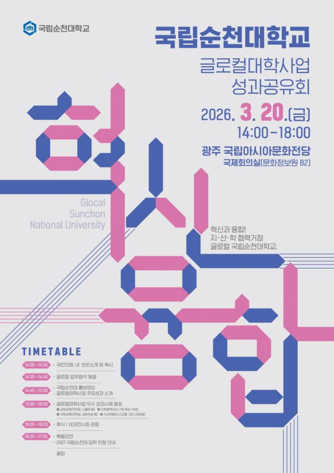À̹ø Çà»ç´Â Á¦1±â ±Û·ÎÄôëÇÐÀ¸·Î ¼±Á¤µÈ ±¹¸³¼øÃµ´ëÇб³°¡ Áö³­ 3³â°£ ÃßÁøÇØ ¿Â Çõ½Å ¼º°ú¸¦ Áö¿ª»çȸ¿Í °øÀ¯Çϰí, ´ëÇаú Áö¿ªÀÌ ÇÔ²² ¼ºÀåÇÏ´Â Çù·Â ±â¹ÝÀ» È®´ëÇϱâ À§ÇØ ¸¶·ÃµÆ´Ù.