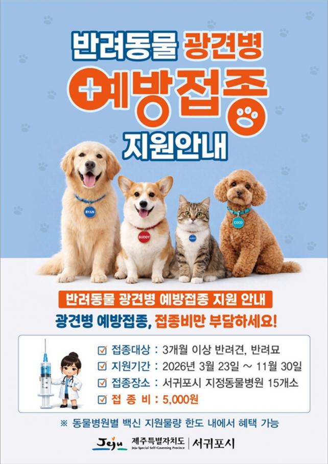 ¿¹¹æÁ¢Á¾À» Èñ¸ÁÇÏ´Â ¹Ý·Áµ¿¹° º¸È£ÀÚ´Â ¼±ÍÆ÷½Ã ³» ÁöÁ¤ µ¿¹°º´¿ø(15°³¼Ò)¿¡ ¹æ¹®ÇÏ¸é ¹é½Å ºñ¿ëÀº Àü¾× Áö¿ø ¹Þ°í, 5,000¿øÀÇ ½Ã¼ú·á¸¸ ºÎ´ãÇϸé Á¢Á¾À» ¹ÞÀ» ¼ö ÀÖ´Ù.