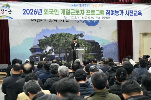[½Ã»çÁ¾ÇսŹ® = ¿À½ÂÅà ±âÀÚ] Àå¼ö±ºÀº 18ÀÏ ±ºÃ» ±º¹Îȸ°ü¿¡¼­ 2026³âµµ ¿Ü±¹ÀÎ °èÀý±Ù·ÎÀÚ °í¿ë³ó°¡ 190¸íÀ» ´ë»óÀ¸·Î »çÀü±³À°À» ½Ç½ÃÇß´Ù.