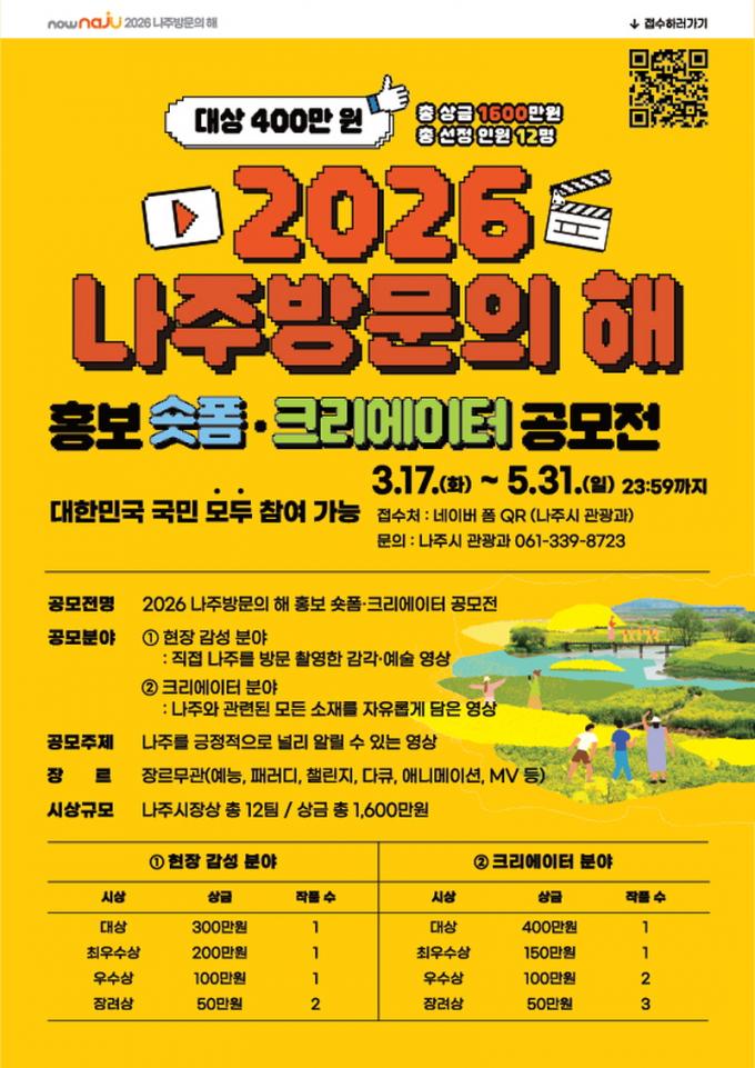 ³ªÁֽà °ü°èÀÚ´Â ¡°À̹ø °ø¸ðÀüÀº ÀÚÀ¯·Î¿î Çü½ÄÀÇ ¿µ»ó ÄÜÅÙÃ÷¸¦ ÅëÇØ ³ªÁÖÀÇ ¸Å·ÂÀ» »õ·Ó°Ô ¾Ë¸®°í âÀÇÀûÀÎ È«º¸ ÄÜÅÙÃ÷¸¦ ¹ß±¼Çϱâ À§ÇØ ¸¶·ÃÇß´Ù¡±¸ç ¡°¸¹Àº ±¹¹ÎÀÌ Âü½ÅÇÑ ¿µ»óÀ¸·Î ¡®2026 ³ªÁֹ湮ÀÇ ÇØ¡¯ È«º¸¿¡ ÇÔ²²ÇØ ÁÖ±æ ¹Ù¶õ´Ù¡±°í ¸»Çß´Ù.