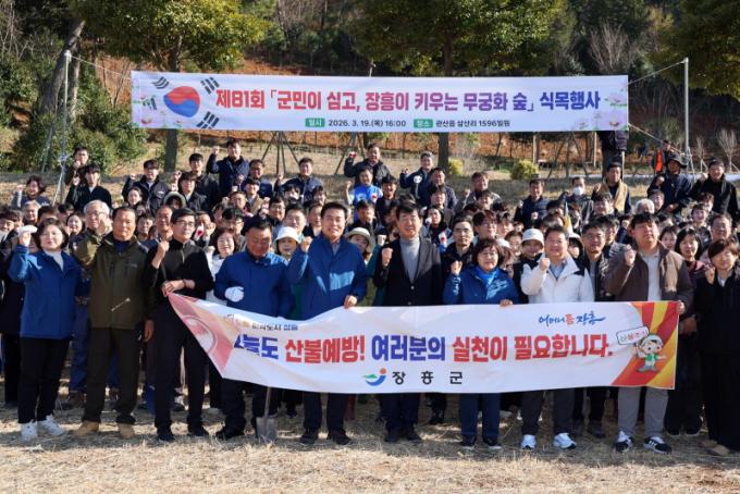 À̹ø Çà»ç¿¡´Â ÀåÈﱺ»ê¸²Á¶ÇÕÀ» ºñ·ÔÇÑ Áö¿ª »çȸ´Üü ÀÓÁ÷¿ø°ú ±º¹Î µî ¾à 200¸íÀÌ Âü¿©ÇØ ³ª¶ó²É ¹«±ÃÈ­ 1,000ÁÖ¸¦ ½ÄÀçÇß´Ù.