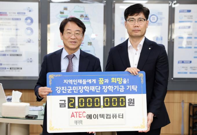 ÀÌ¿Í ÇÔ²² ±èÇü¼ö ¿¡ÀÌÅØÄÄÇ»ÅÍ ³²ºÎ»ç¾÷ºÎÀåÀº Àç´É°ú ¼ÒÁúÀÌ ÀÖ´Â ÀÎÀçµéÀÇ Çо÷À» Àå·ÁÇϰí Áö¿øÇϱâ À§ÇÏ¿© 2¹é¸¸ ¿øÀÇ ÀåÇбÝÀ» ù ±âŹÇß´Ù. ¿¡ÀÌÅØÄÄÇ»ÅÍ ³²ºÎ»ç¾÷ºÎ´Â ±¤ÁÖ ±¤»ê±¸¿¡ ¼ÒÀçÇÑ ÄÄÇ»ÅÍ ¹× IT Àåºñ Á¦Á¶¡¤°ø±Þ ¾÷ü·Î ÃÖ±Ù 5³â°£ °Áø±º¿¡ 581´ë ±Ô¸ðÀÇ PC¸¦ °ø±ÞÇÑ ¹Ù ÀÖ´Ù. À̹ø ±âŹÀº °Áø ±³À° ¹ßÀü°ú Áö¿ª»çȸ »ó»ý¿¡ ´ëÇÑ °ü½ÉÀ» ½ÇõÀ¸·Î º¸¿©ÁáÀ¸¸ç ù ±âŹÀÌÁö¸¸ Áö¿ª ÇлýµéÀ» ÀÀ¿øÇÏ´Â ¸¶À½À» ´ã¾Æ ÀåÇлç¾÷¿¡ ÈûÀ» º¸ÅÉ´Ù´Â Á¡¿¡¼ Àǹ̰¡ Å©´Ù.