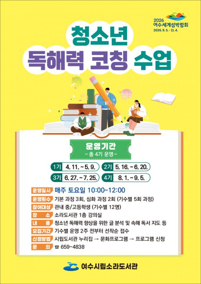 ¡®Ã»¼Ò³â µ¶ÇØ·Â ÄÚĪ ¼ö¾÷¡¯Àº û¼Ò³âÀÇ µ¶ÇØ·Â Çâ»óÀ» À§ÇØ ¼Óµ¶ ÈÆ·Ã°ú Çٽɾî ã±â¡¤Á᫐ ³»¿ë ã±â µîÀÇ ±Û ºÐ¼® ¹æ¹ý µî ½ÇÀü µ¶ÇØ ´É·ÂÀ» ¹è¿ï ¼ö ÀÖ´Â ÇÁ·Î±×·¥ÀÌ´Ù.