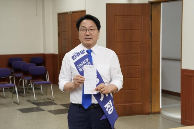 [½Ã»çÁ¾ÇսŹ® = ¿À½ÂÅà ±âÀÚ] °­±âÁ¤ ±¤ÁÖ±¤¿ª½ÃÀåÀÌ 20ÀÏ ¿ÀÈÄ Àü³²±¤ÁÖÅëÇÕÆ¯º°½ÃÀå ¼±°Å Ã⸶¸¦ À§ÇØ ¿¹ºñÈĺ¸ µî·ÏÀ» ¸¶Ä¡°í º»°ÝÀûÀÎ ¼±°Å üÁ¦¿¡ µ¹ÀÔÇß´Ù.