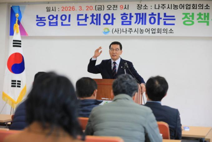 ½Å È帴 À̳¯ ¿ÀÀü ³ªÁÖ ³ó¾î¾÷ȸÀǼҿ¡¼­ ¿­¸° ³ó¾÷ÀδÜü °£´ãȸ¿¡ Âü¼®ÇØ Áö¿ª ³ó¾÷ Çö¾È°ú ³óÃÌÀÌ °Þ°í ÀÖ´Â ¾î·Á¿ò¿¡ ´ëÇÑ ÀǰßÀ» µé¾ú´Ù. ÀÌ ÀÚ¸®¿¡¼­´Â ³ó¾÷ ±â¹Ý À¯Áö¿Í ³óÃÌ È°·Â ȸº¹, ÇöÀå ¾Ö·Î ÇØ¼Ò¸¦ À§ÇÑ ´Ù¾çÇÑ ¸ñ¼Ò¸®°¡ ¿À°¬´Ù.