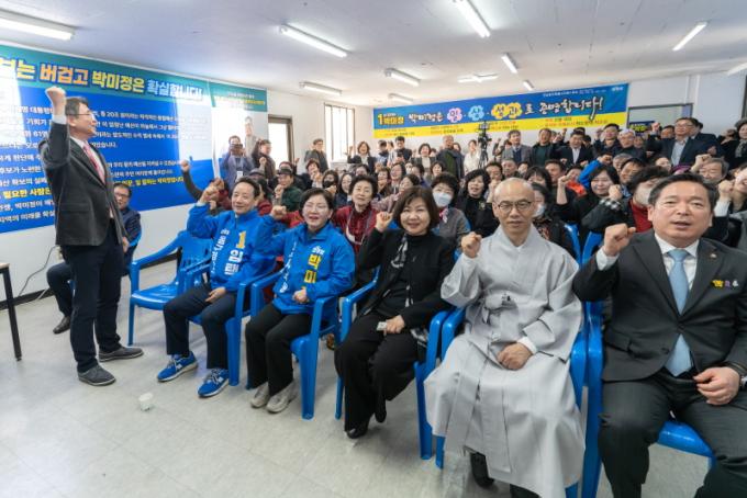 À̳¯ Çà»ç´Â Âü¼®ÀÚµéÀÇ ÃàÇÏ ÄÉÀÌÅ© Ä¿ÆÃ°ú ¡®¹Ú¹ÌÁ¤ ÆÄÀÌÆÃ¡¯ ±¸È£ Á¦Ã¢À¸·Î ¸¶¹«¸®µÇ¾úÀ¸¸ç, ¹Ú ¿¹ºñÈĺ¸ÀÇ ÅºÅºÇÑ ¼¼¸ôÀÌ¿Í ÇÔ²² º»°ÝÀûÀÎ ¼±°ÅÀüÀÇ ½ÃÀÛÀ» ¾Ë¸®´Â ½ÅȣźÀÌ µÇ¾ú´Ù.