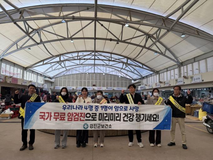 [½Ã»çÁ¾ÇսŹ® = ¿À½ÂÅà ±âÀÚ] °­Áø±ºº¸°Ç¼Ò°¡ ¾Ï ¿¹¹æ ¼öÄ¢°ú Á¶±â °ËÁøÀÇ Çʿ伺À» ¾Ë¸®±â À§ÇØ Áö³­ 19ÀÏ °­ÁøÀ¾ ½ÃÀå ÀÏ¿ø¿¡¼­ ¡®321 ¾Ï ¿¹¹æÀÇ ³¯¡¯ È«º¸ Ä·ÆäÀÎÀ» ÁøÇàÇß´Ù.