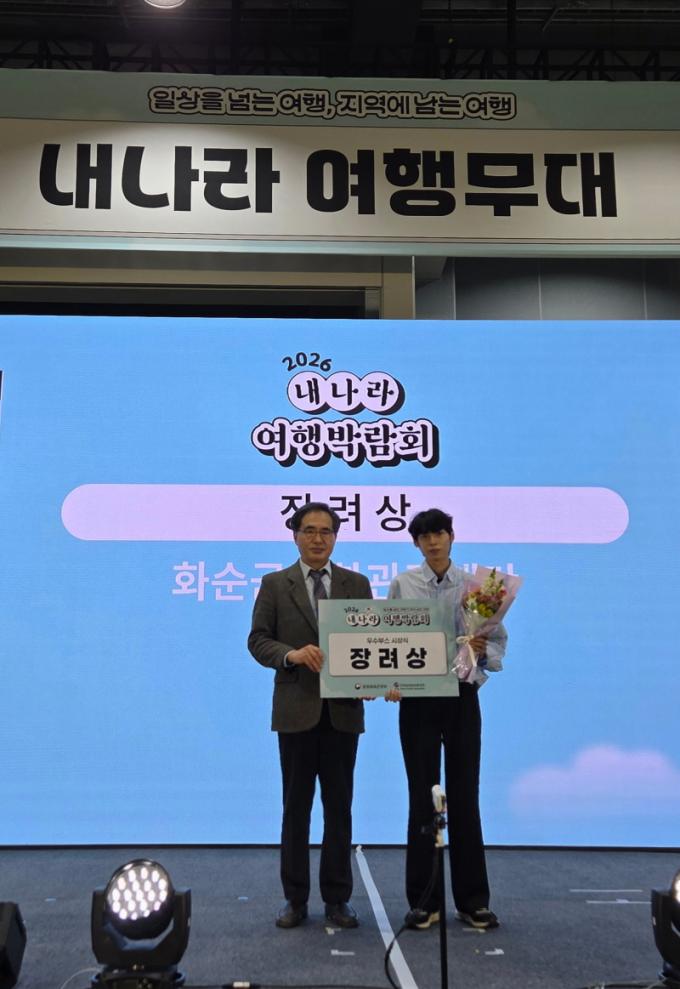 [½Ã»çÁ¾ÇսŹ® = ¿À½ÂÅà ±âÀÚ] (Àç)È­¼ø±º¹®È­°ü±¤Àç´Ü(ÀÌ»çÀå ±¸º¹±Ô)Àº Áö³­ 3¿ù 19ÀϺÎÅÍ 22ÀϱîÁö ¼­¿ï ÄÚ¿¢½º ¸¶°î Àü½ÃÀå¿¡¼­ ¿­¸° '2026 ³»³ª¶ó ¿©Çà¹Ú¶÷ȸ'¿¡¼­ ¿ì¼öºÎ½º·Î ¼±Á¤µÅ Àå·Á»óÀ» ¼ö»óÇß´Ù°í ¹àÇû´Ù.