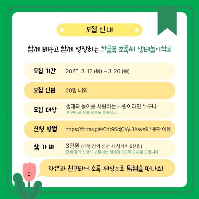 ½ÅûÀº ¿Â¶óÀÎ ±¸±Û ½Åû¼­(https://forms.gle/CYr96bjCVyi3AsvX9) ¶Ç´Â 010-3633- 9393¸¦ ÅëÇØ ¹®ÀÚÁ¢¼ö°¡ °¡´ÉÇϸç, ¾î¸°ÀÌ µ¿¹Ý Âü¿©µµ °¡´ÉÇØ °¡Á· ´ÜÀ§ Âü¿©ÀÚ¿¡°Ôµµ ÀÇ¹Ì ÀÖ´Â ÇÁ·Î±×·¥ÀÌ µÉ °ÍÀ¸·Î ±â´ëµÈ´Ù.