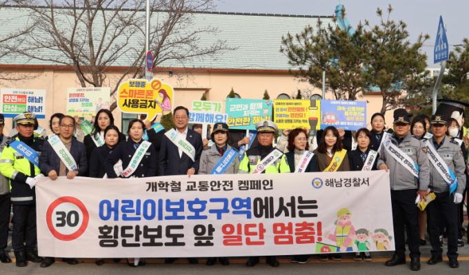 [½Ã»çÁ¾ÇսŹ® = °­À±¿À ±âÀÚ] ÇØ³²°æÂû¼­(¼­Àå ¹Ú¹Ì¿µ)´Â 24ÀÏ ¿ÀÀü ÇØ³²À¾ ¼­ÃʵîÇб³ ÈĹ® ¾Õ¿¡¼­ °³ÇÐö ¾î¸°ÀÌ ±³Åë»ç°í ¿¹¹æÀ» À§ÇÑ ±³Åë¾ÈÀü Ä·ÆäÀÎÀ» ½Ç½ÃÇß´Ù.