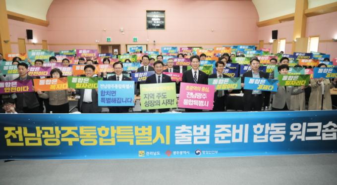 °í±¤¿Ï ±¤ÁÖ½ÃÀå ±ÇÇÑ´ëÇàÀº ¡°Àü³²±¤ÁÖÅëÇÕÆ¯º°½Ã´Â ±¤ÁÖ¿Í Àü³²ÀÇ ¿ª·®À» °áÁýÇØ »õ·Î¿î Áö¿ª¹ßÀü ¸ðµ¨À» ¸¸µå´Â ¿ª»çÀû ÀüȯÁ¡¡±À̶ó¸ç ¡°½Ã¹ÎÀÌ Ã¼°¨ÇÒ ÅëÇÕ ¼º°ú¸¦ âÃâÇÏ´Â µ¥ ÃÖ¼±À» ´ÙÇϰڴ١±°í ¸»Çß´Ù.