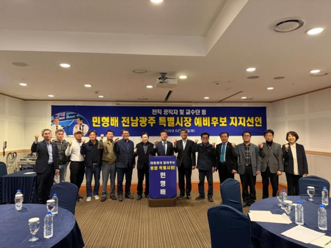 ¹ÎÇü¹è °æ¼±»ç¹«¼Ò ¹Î½ÉÄ·ÇÁ´Â ¡°Àü³²°ú ±¤ÁÖÁö¿ª ÀüÁ÷ °øÁ÷ÀÚ¿Í ±³¼ö 125ÀÎÀÌ Áö³­ 24ÀÏ ±¤ÁÖ È¦¸®µ¥ÀÌÀÎÈ£ÅÚ ÄÁº¥¼ÇȦ¿¡¼­ ¹ÎÇü¹è Àü³²․±¤ÁÖÆ¯º°½ÃÀå ¿¹ºñÈĺ¸ ÁöÁö¸¦ ¼±¾ðÇß´Ù¡±°í 26ÀÏ ¹àÇû´Ù.
