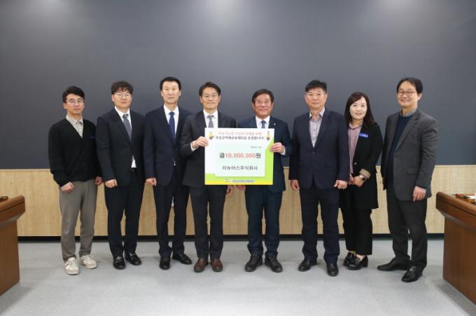 [½Ã»çÁ¾ÇսŹ® = ¿À½ÂÅà ±âÀÚ] Àç´Ü¹ýÀÎ °î¼º±º¹Ì·¡±³À°Àç´ÜÀÌ 27ÀÏ ¸®´º¾î½ºÁÖ½Äȸ»ç(´ëÇ¥ ±èÁ¤ÅÃ)·ÎºÎÅÍ ÀåÇÐ±Ý Áö¿ø»ç¾÷À» À§ÇÑ ±âŹ±Ý 1,000¸¸ ¿øÀ» Àü´Þ¹Þ¾Ò´Ù°í ÀüÇß´Ù. À̹ø ±âŹÀº Áö³­ 2020³â 12¿ù¿¡ ÀÌ¾î µÎ ¹øÂ°´Ù.