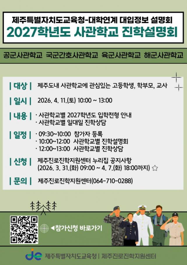 À̹ø ¼³¸íȸ´Â ¿À´Â 6¿ù Áß¼øºÎÅÍ ¿ø¼­ Á¢¼ö°¡ ½ÃÀ۵Ǵ 4°³ »ç°üÇб³(°ø±º»ç°üÇб³, ±¹±º°£È£»ç°üÇб³, À°±º»ç°üÇб³, ÇØ±º»ç°üÇб³) ÀÔÇÐ °ü°èÀÚ¸¦ ÃÊÃ»ÇØ µµ³» Çлý°ú º¸È£ÀÚÀÇ ´ëÀÔ Á¢±Ù¼ºÀ» ³ôÀÌ°í »ç°üÇб³ ÁøÇп¡ ÇÊ¿äÇÑ ¸ÂÃãÇü Á¤º¸¸¦ Á¦°øÇϱâ À§ÇØ ¸¶·ÃµÆ´Ù.