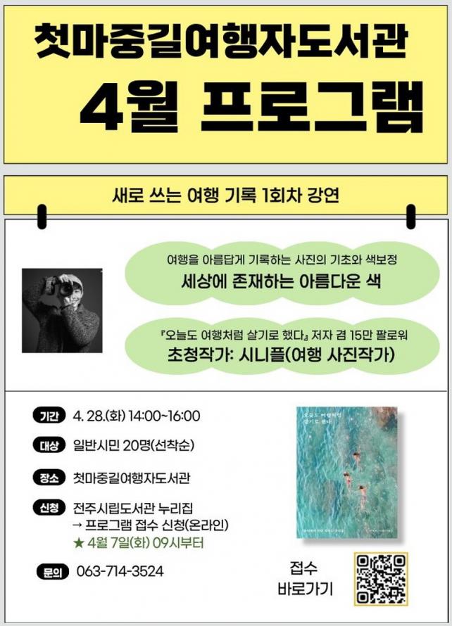 ÇÁ·Î±×·¥¿¡ Âü¿©¸¦ ¿øÇÏ´Â ½Ã¹ÎÀº ¿À´Â 4¿ù 7ÀϺÎÅÍ ÀüÁÖµµ¼°ü ´©¸®Áý(lib.jeonju.go.kr)À» ÅëÇØ ½ÅûÇÒ ¼ö ÀÖÀ¸¸ç, ÀÌÈÄ ÁøÇàµÇ´Â ÃÊû °¿¬ ÀÏÁ¤Àº ÀüÁÖµµ¼°ü ´©¸®Áý ¶Ç´Â ÀüÁֽà Ư¼ºÈµµ¼°ü ÀνºÅ¸±×·¥À» ÅëÇØ ¾È³»µÉ ¿¹Á¤ÀÌ´Ù. ¸Åȸ Âü¿©¸¦ ¿øÇÏ´Â ½Ã¹ÎÀº ÀüÁÖµµ¼°ü ´©¸®ÁýÀ» ÅëÇØ 3ÁÖ ÀüºÎÅÍ ¿Â¶óÀÎ ¼±Âø¼ø Á¢¼öÇÏ¸é µÈ´Ù.