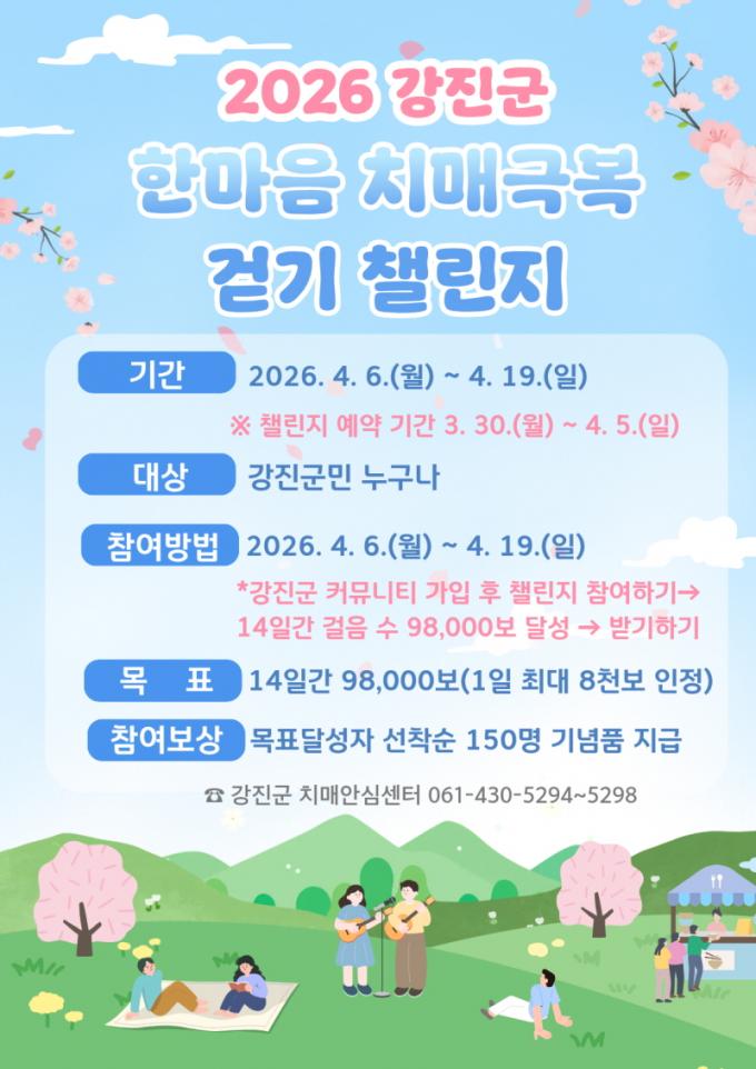 À̹ø 縰Áö ¸ñÇ¥´Â 14ÀÏ µ¿¾È 98,000º¸ ´Þ¼ºÇÏ´Â °ÍÀÌ´Ù. ´Ü ¹«¸®ÇÑ ¿îµ¿À» ¹æÁöÇϱâ À§ÇØ °ÉÀ½ ¼ö´Â 1ÀÏ ÃÖ´ë 8,000º¸±îÁö¸¸ ÀÎÁ¤µÈ´Ù. ¸ñÇ¥ °ÉÀ½ ¼ö¸¦ ´Þ¼ºÇÑ ±º¹Î Áß ¼±Âø¼ø 150¸í¿¡°Ô´Â ¼ÒÁ¤ÀÇ ±â³äǰÀÌ ÁõÁ¤µÈ´Ù. ´ë»óÀÚ´Â 4¿ù 21ÀϺÎÅÍ 4¿ù 30ÀϱîÁö °Áø±º Ä¡¸Å¾È½É¼¾Å͸¦ Á÷Á¢ ¹æ¹®ÇÏ¿© ±â³äǰÀ» ¼ö·ÉÇÏ¸é µÈ´Ù.