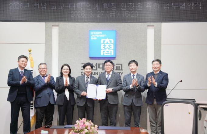 [½Ã»çÁ¾ÇսŹ® = ¿À½ÂÅà ±âÀÚ] Á¶¼±´ëÇб³(ÃÑÀå ±èÃἺ)´Â 3¿ù 27ÀÏ º»°ü ûÃâ¾î·ë¿¡¼­ Àü¶ó³²µµ±³À°Ã»°ú ¡®°í±³-´ëÇÐ ¿¬°è ÇÐÁ¡ ÀÎÁ¤¡¯À» À§ÇÑ ¾÷¹«Çù¾àÀ» ü°áÇß´Ù°í ¹àÇû´Ù.