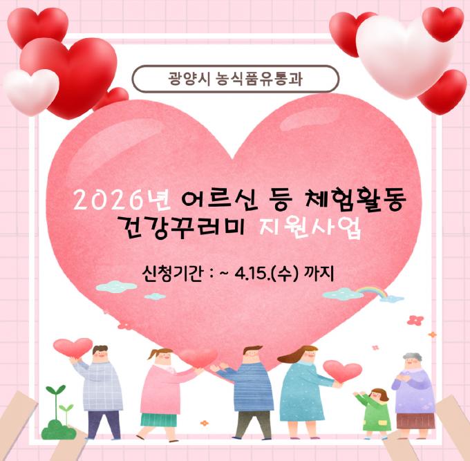 üÇèȰµ¿ °Ç°²Ù·¯¹Ì´Â ±¤¾ç½Ã Áö¿ª ³» ³óÃÌÀ¶º¹ÇÕ»ê¾÷ ÀÎÁõ°æ¿µÃ¼¸¦ Æ÷ÇÔÇÑ ¡®³²µµÀåÅÍ¡¯ µî·Ï ¾÷ü¸¦ ÅëÇØ °ø±ÞµÇ¸ç, Áö¿ª ³ó°¡°¡ »ý»êÇÑ Ã¼ÇèÇü »óǰÀ» Ȱ¿ëÇØ üÇèȰµ¿°ú Áö¿ª ³ó¾÷À» ¿¬°èÇØ ¿î¿µµÈ´Ù. ½ÅûÀº ±¤¾ç½Ã ´©¸®Áý¿¡¼ ½Åû¼¸¦ ³»·Á¹Þ¾Æ ÀÛ¼ºÇÑ µÚ ÀüÀÚ¿ìÆí(kikijsj@korea.kr)À¸·Î Á¦ÃâÇÏ¸é µÈ´Ù. Á¢¼ö±â°£Àº ¿À´Â 4¿ù 15ÀϱîÁöÀ̸ç, ÀÚ¼¼ÇÑ »çÇ×Àº ±¤¾ç½Ã ³ó½ÄǰÀ¯Åë°ú·Î ¹®ÀÇÇÏ¸é µÈ´Ù.