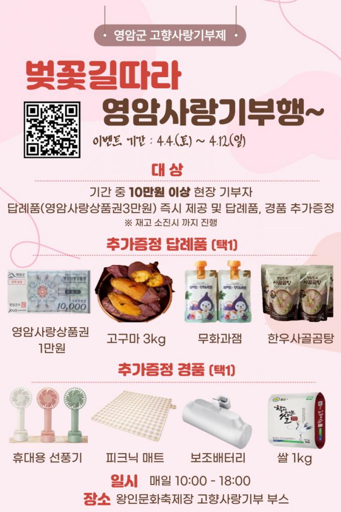 ÀÌ¿Í ÇÔ²² ÃàÁ¦ ±â°£ÀÎ 4¿ù 4ÀϺÎÅÍ 12ÀϱîÁö ÃàÁ¦Àå ³» °íÇâ»ç¶û±âºÎ ºÎ½º¿¡¼´Â ÇöÀå ±âºÎ À̺¥Æ®µµ ¿î¿µµÈ´Ù. ÇöÀå¿¡¼ ±âºÎ¿¡ Âü¿©ÇÒ °æ¿ì ±âÁ¸ ´ä·Êǰ¿¡ ´õÇØ Ãß°¡ ÁõÁ¤Ç°À» ¹ÞÀ» ¼ö ÀÖ´Ù.