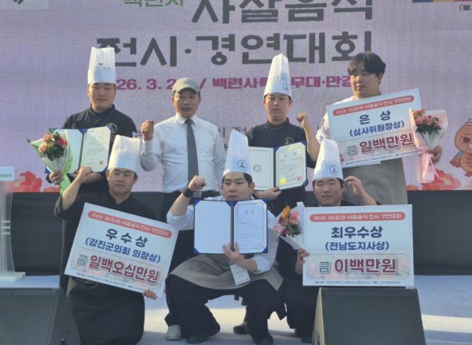 Àü³² °­Áø ¸¸´ö»ê ¹é·Ã»ç¿¡¼­ ¿­¸° ¡®Á¦6ȸ Â÷¿Í »çÂûÀ½½Ä Àü½Ã¡¤°æ¿¬´ëȸ¡¯ ¶óÀÌºê ºÎ¹®¿¡ ÃâÀüÇÑ Çлý 3ÆÀ(Áöµµ±³¼ö ¹èÇö¼ö) Àü¿ø ¼ö»óÀ̶ó´Â Äè°Å¸¦ ÀÌ·ð´Ù.