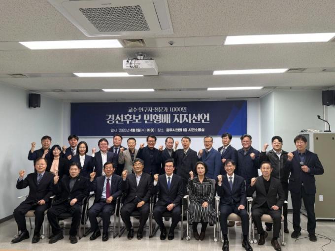 [½Ã»çÁ¾ÇսŹ® = ¿À½ÂÅà ±âÀÚ] Àü³²¡¤±¤ÁÖ Áö¿ª ´ëÇб³¼ö¿Í ¿¬±¸ÀÚ, Àü¹®°¡ 1000¸íÀÌ 40³â ¸¸¿¡ ¸ÂÀÌÇÏ´Â ÇàÁ¤ ÅëÇÕÀÇ ¼º°øÀ» À§ÇØ ´õºÒ¾î¹ÎÁÖ´ç Àü³²±¤ÁÖÅëÇÕÆ¯º°½ÃÀå °æ¼± Èĺ¸ÀÎ ¹ÎÇü¹è ±¹È¸ÀÇ¿ø(±¤ÁÖ ±¤»ê±¸À»)¿¡ ´ëÇÑ ÁöÁö¸¦ °ø½Ä ¼±¾ðÇß´Ù.