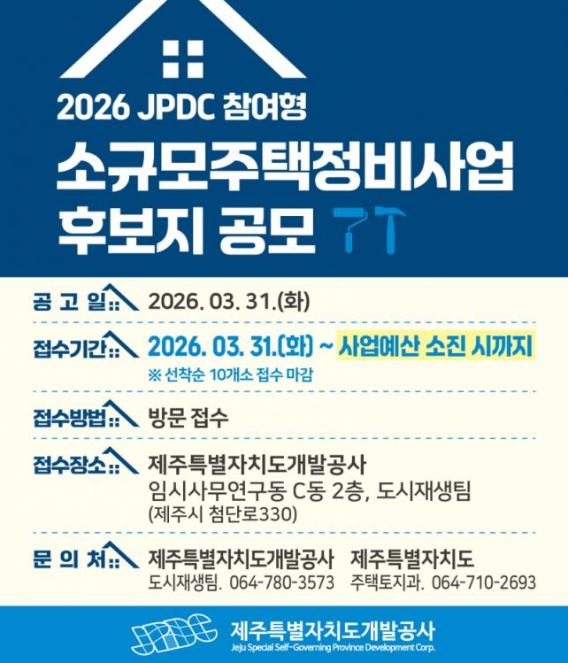 Á¦ÁÖ°³¹ß°ø»ç, JPDCÂü¿©Çü ¼Ò±Ô¸ðÁÖÅÃÁ¤ºñ»ç¾÷ Èĺ¸Áö ¹ß±¼ °ø¸ð ½Ç½Ã