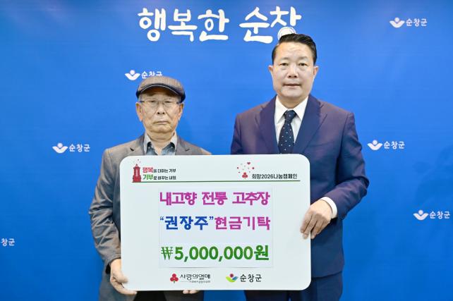 [½Ã»çÁ¾ÇսŹ® = ¿À½ÂÅà ±âÀÚ] ¼øÃ¢±º ¹Î¼Ó¸¶À»¿¡ À§Ä¡ÇÑ ³»°íÇâ ÀüÅë °íÃßÀå ´ëÇ¥ ±ÇÀåÁÖ¡¤¾ç³»½Â ºÎºÎ´Â ÃÖ±Ù ¼øÃ¢±ºÃ»À» ¹æ¹®ÇØ Áö¿ªÀÇ ¾î·Á¿î ÀÌ¿ôÀ» À§ÇØ »ç¿ëÇØ ´Þ¶ó¸ç ¼º±Ý 500¸¸ ¿øÀ» ±âÅ¹ÇØ Áö¿ª»çȸ¿¡ µû¶æÇÑ °¨µ¿À» ÀüÇß´Ù.