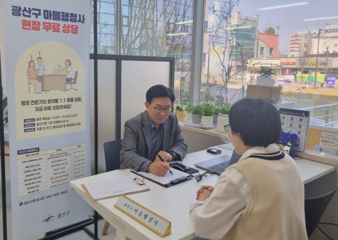 ¸¶À»ÇàÁ¤»ç ¹«·á »ó´ãÀº ±¤»ê±¸¿¡ ÁÖ¼Ò¸¦ µÐ ÁÖ¹Î, »ç¾÷ÀÚ, ¼Ò»ó°øÀÎ µî ´©±¸³ª ¹ÞÀ» ¼ö ÀÖ´Ù. ±¤»ê±¸´Â ÇàÁ¤¾÷¹«·Î ¾î·Á¿òÀ» °Þ´Â ½Ã¹ÎÀÌ µµ¿òÀ» ¹ÞÀ» ¼ö ÀÖµµ·Ï ¸ÅÁÖ ¸ñ¿äÀÏ(¿ÀÈÄ 2½Ã~4½Ã) ±¸Ã» 1Ãþ ¹Î¿øºÀ»ç°ú ¾È¿¡ ¸¶À»ÇàÁ¤»ç »ó´ã ⱸ¸¦ ¿î¿µÇÑ´Ù.