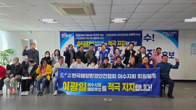 (»ç)Çѱ¹Çؾçȯ°æ¾ÈÀüÇùȸ ¿©¼öÁöȸ ¾Èº´¼® ȸÀå, »ç¶û³ª¿ì¸® ¿©¼ö´Ù¹®È­°¡Á· Á¶Èñ¼± ȸÀå, Àü³²Àå¾ÖÀ蝹µ¿¬¸Í ±èÈñ¼÷ ȸÀå, Àü³²Àå¾ÖÀÎűǵµ¿¬¸Í Á¤¼­ÀΠȸÀå, Àü³²Àå¾ÖÀιèµå¹ÎÅÏ¿¬¸Í ÃÖÇü¿Á ȸÀå µîÀº ÃÖ±Ù À̱¤ÀÏ ¿¹ºñÈĺ¸ ¼±°Å»ç¹«½ÇÀ» ã¾Æ ÁöÁö Àǻ縦 ¹àÇû´Ù.