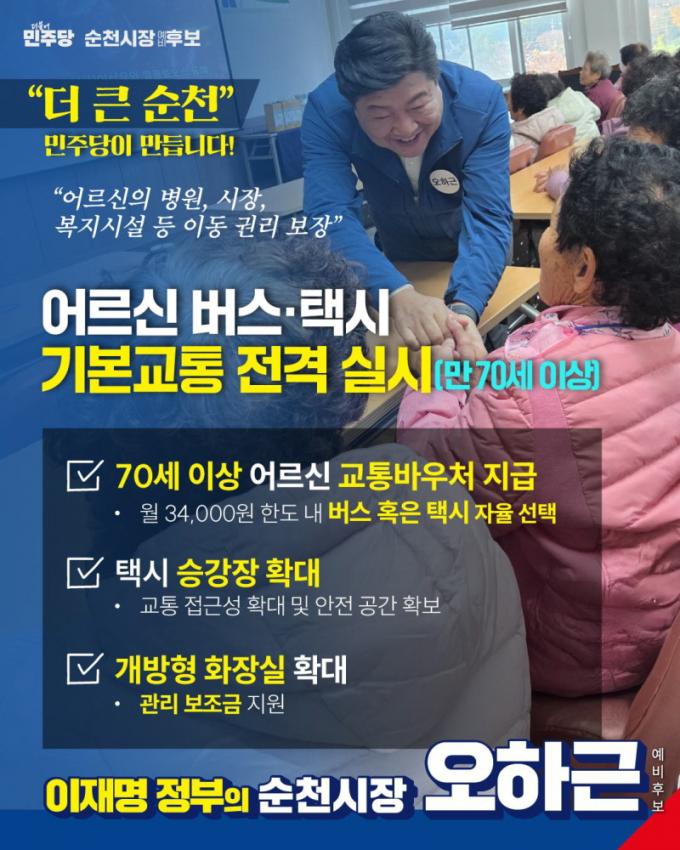 [½Ã»çÁ¾ÇսŹ® = ¿À½ÂÅà ±âÀÚ] ¿ÀÇϱ٠¼øÃµ½ÃÀå ¿¹ºñÈ帰¡ 70¼¼ ÀÌ»ó ¾î¸£½Åµé¿¡°Ô ¿ù 3¸¸ 4000¿ø ÇѵµÀÇ ±³Åëºñ¸¦ Áö¿øÇϰڴٴ °ø¾àÀ» 7ÀÏ ¹ßÇ¥Çß´Ù. ÀÌ´Â ¾î¸£½ÅµéÀÇ ±âº» ±³Åë±ÇÀ» º¸ÀåÇϰí À̵¿ ÆíÀǸ¦ ÁõÁøÇϱâ À§ÇÑ Á¶Ä¡´Ù.