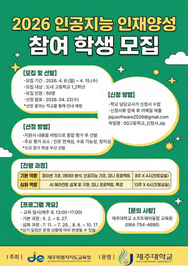 Á¦ÁÖÆ¯º°ÀÚÄ¡µµ±³À°Ã», 2026³â ÀΰøÁö´É(AI) ÀÎÀç ¾ç¼º ÇÁ·Î±×·¥ ¿î¿µ